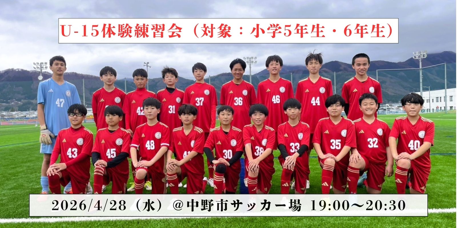 【U-15】クラブ体験会(小学5・6年生対象)開催について ※第1回は4/29(水)